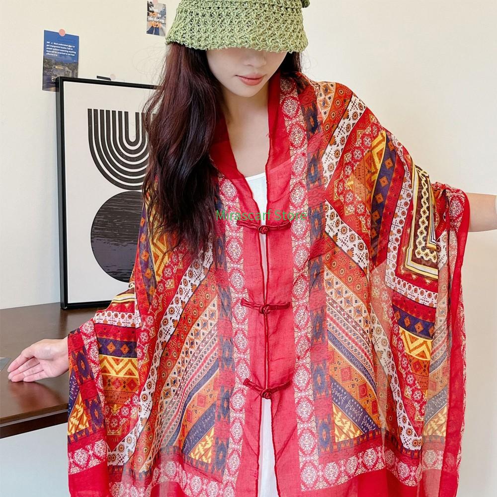 Summer new style sunscreen ethnic style button-fastening shawl for women, ultra-thin beach scarf cloak, long sunscreen clothing for travel and photography