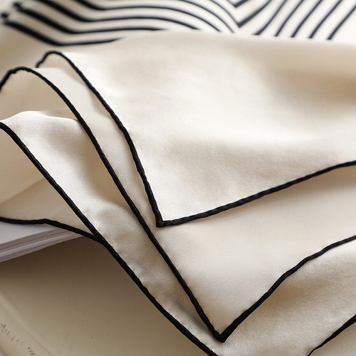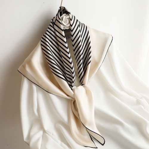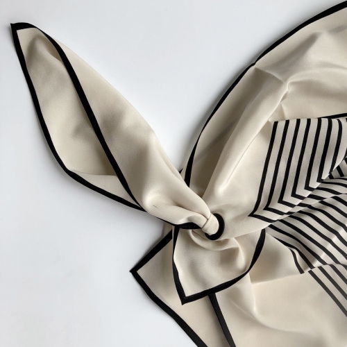 Faux Silk Square Scarf 90x90 - Multi-Purpose Black & White Striped Headscarf, Office Necktie, Sun Protection Hairband | Chic Fashion Accessory