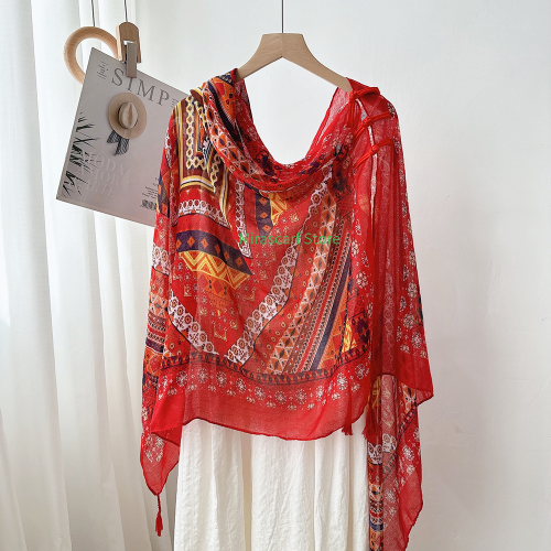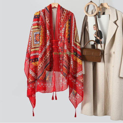 Summer new style sunscreen ethnic style button-fastening shawl for women, ultra-thin beach scarf cloak, long sunscreen clothing for travel and photography