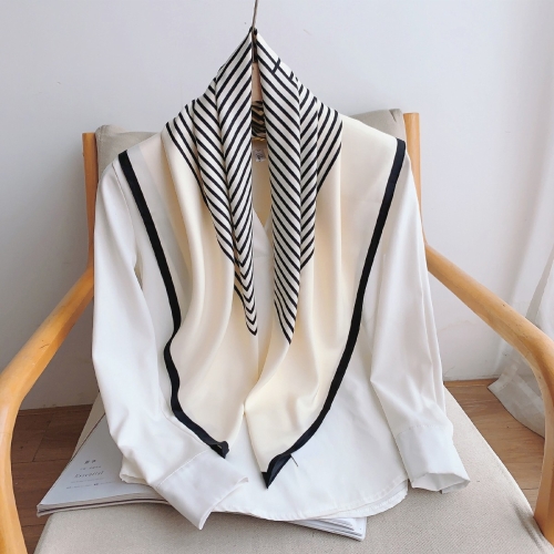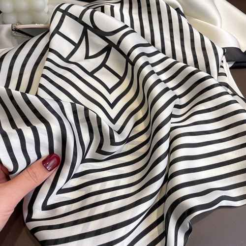 Faux Silk Square Scarf 90x90 - Multi-Purpose Black & White Striped Headscarf, Office Necktie, Sun Protection Hairband | Chic Fashion Accessory